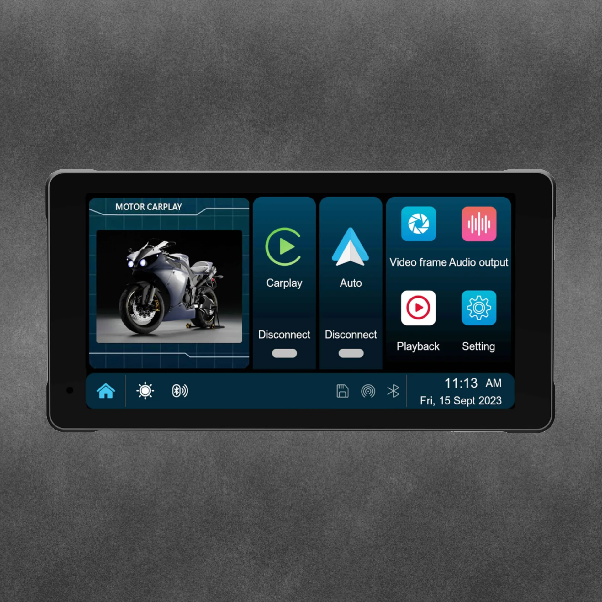 Mit unseren High-End Motorrad-Freisprechsystemen ist man immer zuverlässig mit seinem Mobiltelefon und über die Intercom Verbindung mit seinen Freunden in der Gruppe verbunden. Unser Display ist eine wetterfeste Lösung zur Nutzung des Mobiltelefons mit Hilfe von Apple CarPlay oder Android-Auto.