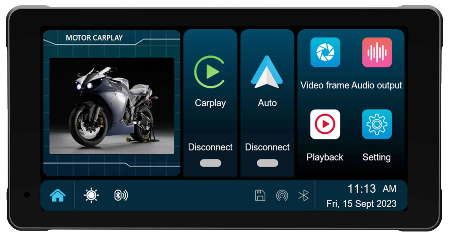 Alles wird per Touch Screen direkt am Lenker gesteuert. Das Display ist IP67 wasserdicht und kann bei jedem Wetter am Fahrzeug in Betrieb bleiben. Mit zwei zusätzlichen Kameras mit denen zum Beispiel nach vorne und nach hinten gefilmt werden kann haben sie ihre Umgebung jederzeit im Blick. Sie haben die Möglichkeit das gefilmte auf einer Speicherkarte (nicht im Lieferumfang) aufzuzeichnen.